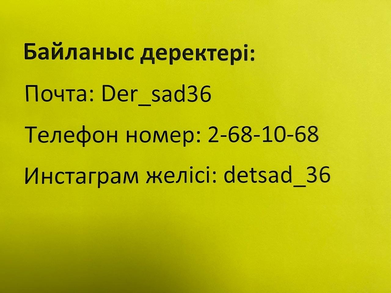 17 қыркүйек 2025 0 1 2 3 4 5 Байланыс деректері Байланыс деректері Почта: Der_sad36Телефон номер: 2-68-10-68Инстаграм желісі: detsad_36