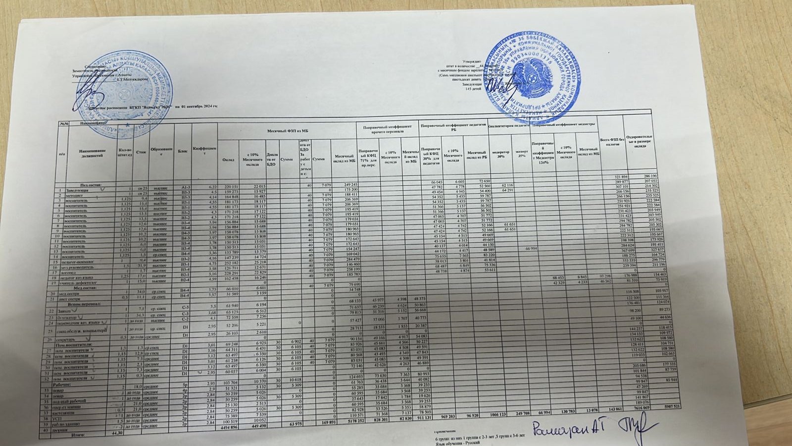 Штатное расписание 2024 г » ГККП Ясли сад № 36